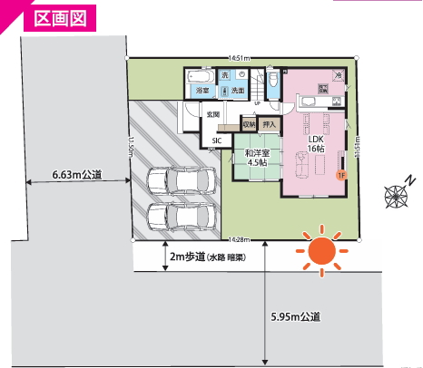 ◇カースペース並列3台可能 前面道路幅6Mで車の出し入れも余裕があります