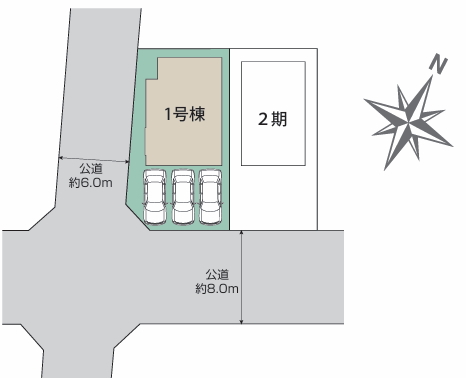 ▽南8m公道で車の出し入れ楽々です♪ 敷地38坪越え・カースペース3台駐車可能